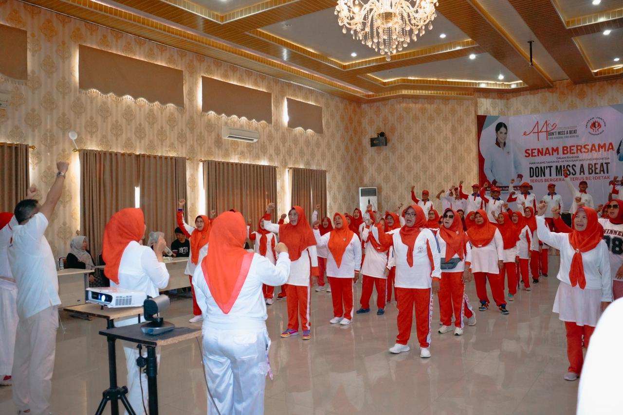 PODIUM, BANDARLAMPUNG, –Dalam rangka memperingati Hari Ulang Tahun ke-44 Yayasan Jantung Indonesia (YJI), Ketua YJI Provinsi Lampung, Purnama Wulan Sari Mirza, menggelar kegiatan senam bersama dan pemeriksaan kesehatan di Auditorium Dinas Kesehatan Provinsi Lampung, Minggu (9/11/2025).